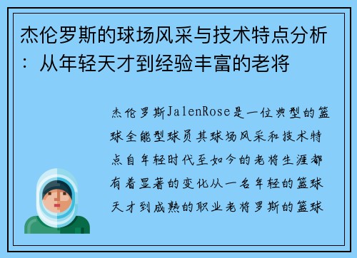 杰伦罗斯的球场风采与技术特点分析:从年轻天才到经验丰富的老将